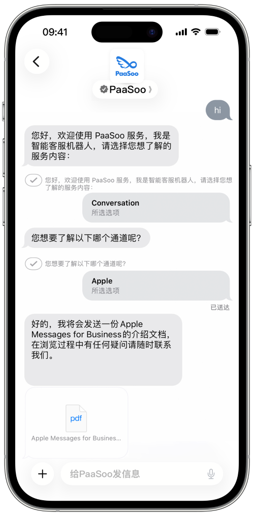 通过整合 Apple 原生入口(如 Apple 地图、Safari 浏览器、Siri 和信息建议),并支持非原生渠道(如链接、二维码、电子邮件和网站嵌入),让用户无论从何处开启旅程,都能轻松发现并开始与您的品牌对话。